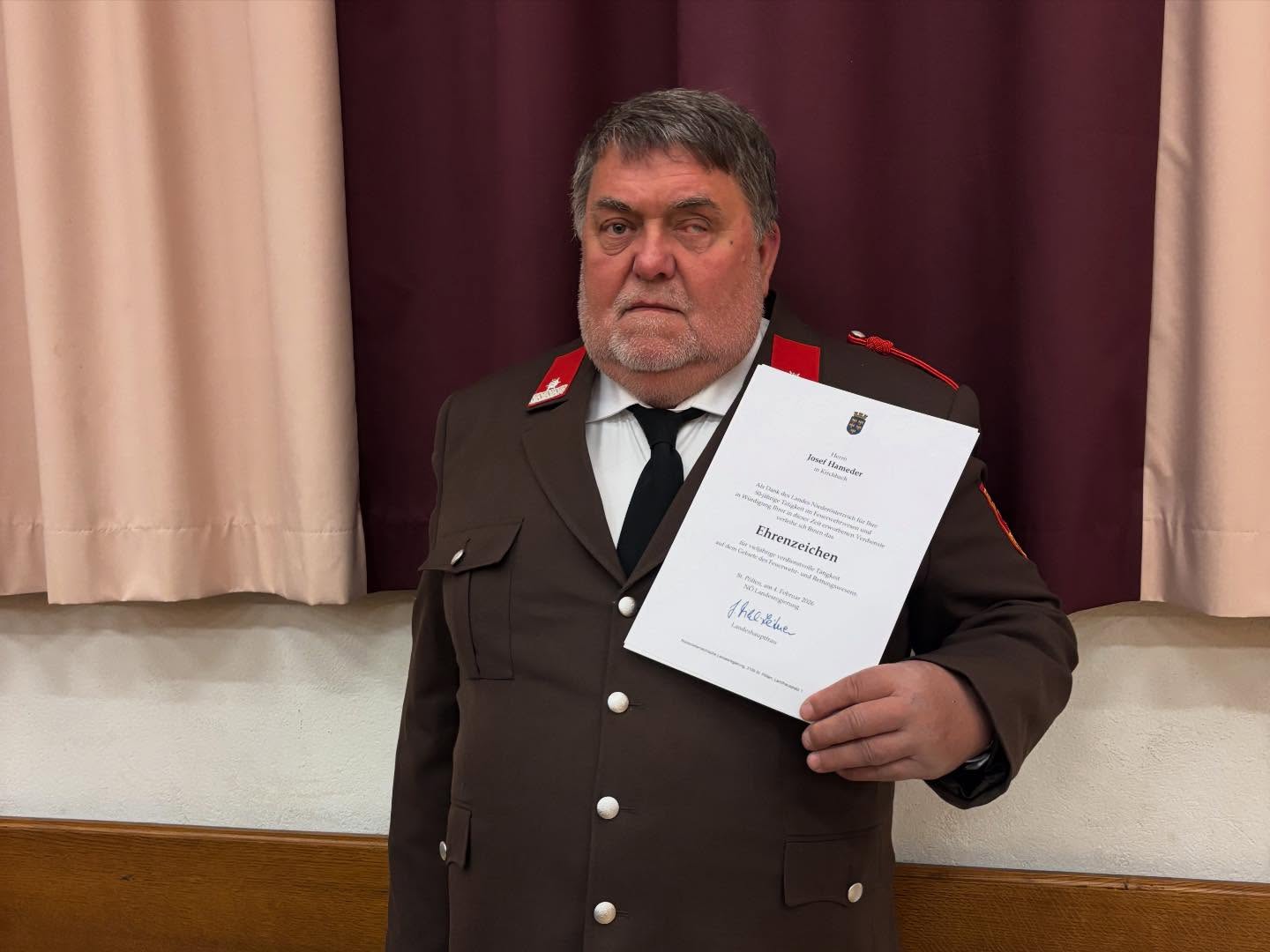 Weiters wurde einem unserer Mitglieder, Löschmeister Josef Hameder, die Urkunde für 50 Jahre Feuerwehrdienst überreicht. Dies ist eine äußerst beeindruckende Leistung, die wir selbstverständlich gebührend gefeiert haben.