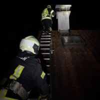 Aus dem Kamin traten Funken aus, zudem war Rauch im Wohnhaus wahrnehmbar. Ein Atemschutztrupp kontrollierte den Innenbereich, während sich drei Einsatzkräfte auf das Dach begaben, um die Lage von oben zu beurteilen.