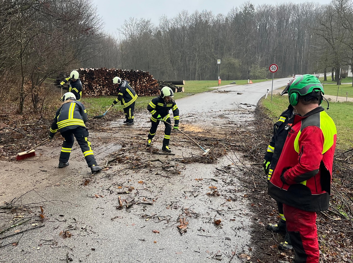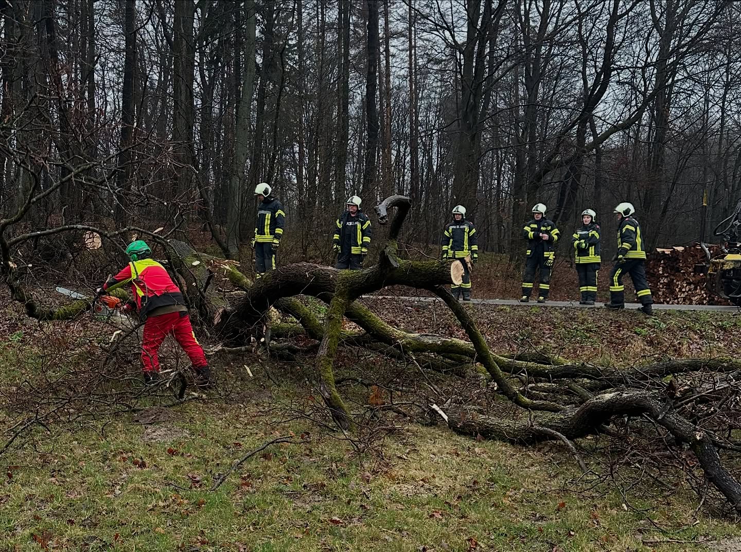 Baum wurde erfolgreich entfernt, Straße ist wieder frei.