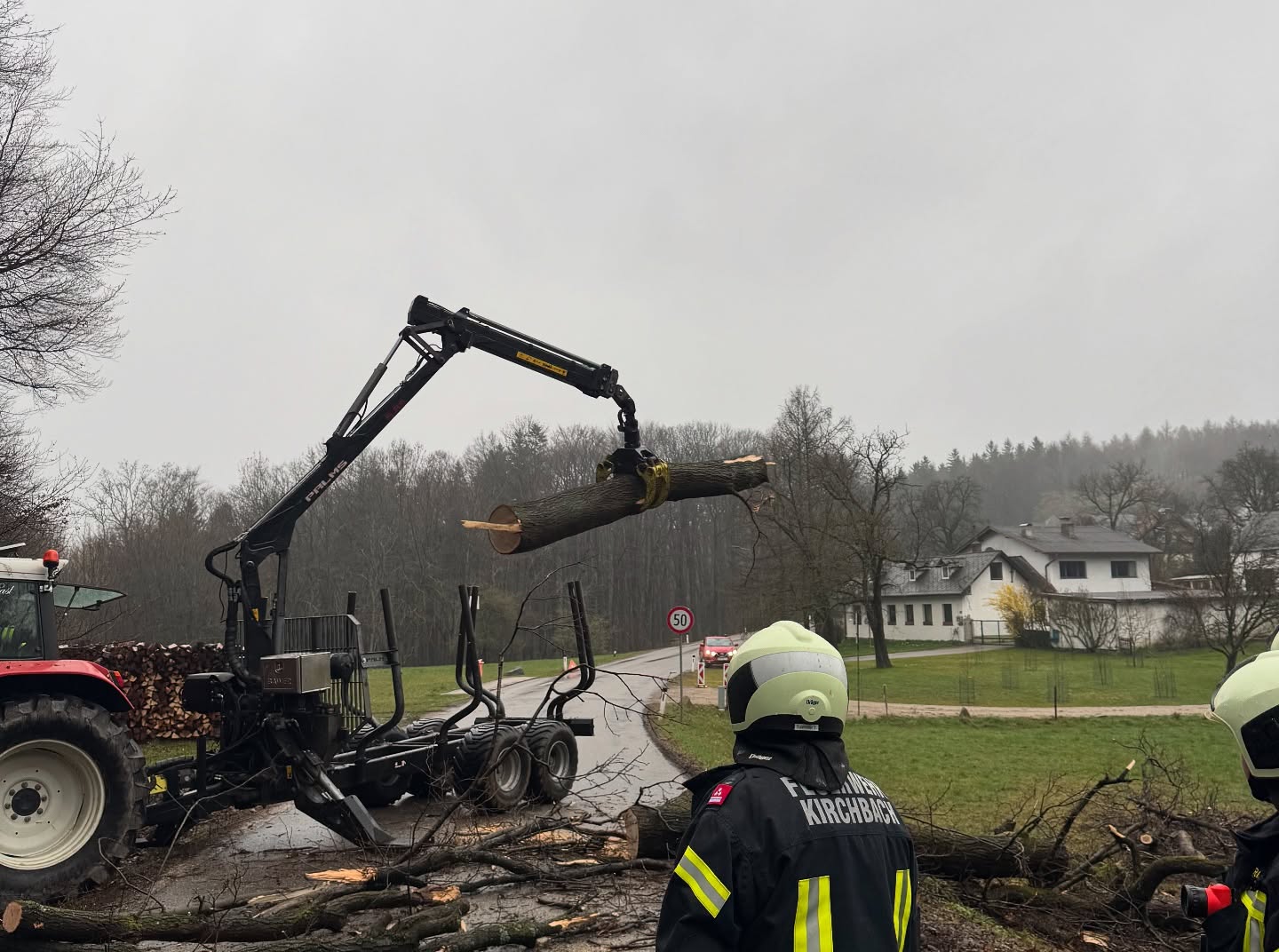 Baum blockiert Straße beim Sonnberg