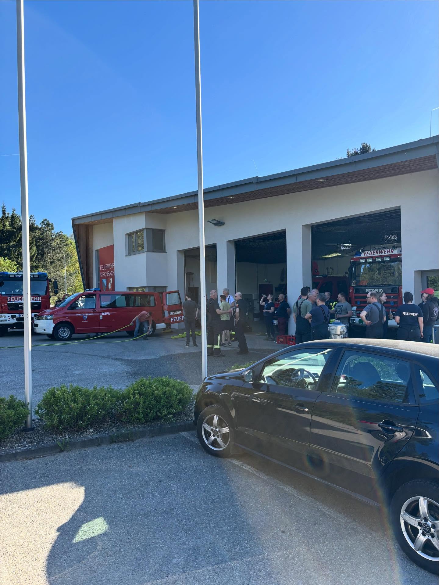 Im Anschluss an den Einsatz kamen die Feuerwehren FF Weidlingbach und FF Hintersdorf zu uns ins Feuerwehrhaus, um ihre Wassertanks sowie Atemschutzflaschen wieder zu befüllen. Für Getränke war selbstverständlich ebenfalls gesorgt.